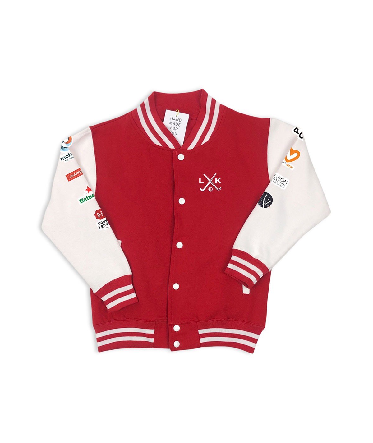 *Dit jasje is tijdelijk even niet goed leverbaar, hierdoor kan de levertijd helaas oplopen dank voor je begrip! Katoenen Rood-Wit club jasje met jouw initialen op de borst en typografische print op de rug en ruimte tot wel 8 (kleuren) sponsor logo’s, maximaal 4 logo’s per mouw. Het katoen aan de binnenkant van het jasje is gekamd en dat maakt ‘m superzacht! Kies uit één van de 8 kleuren en match er jouw favoriete kleur opdruk bij. Let op: Sponsorlogo’s graag allemaal tegelijk en in .EPS formaat mailen naar info@shop-pop.nl o.v.v. je naam en bestelnummer. Dank!