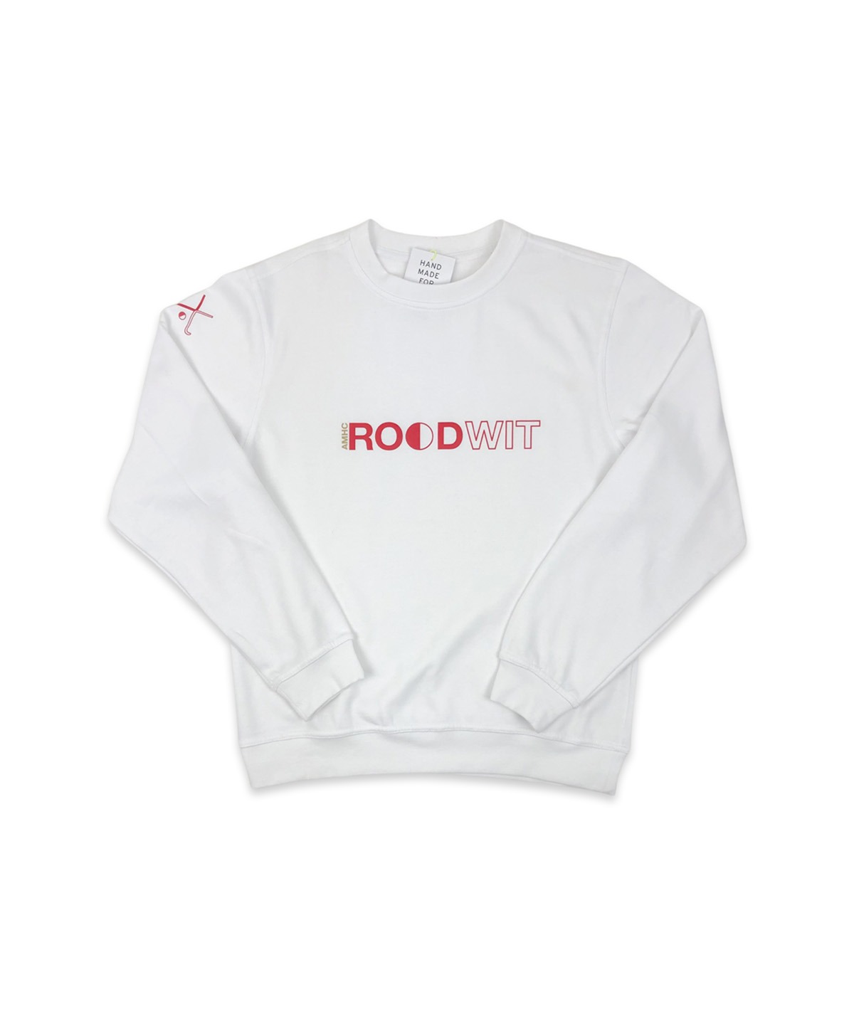 Rood-Wit sweater met typografische print op de borst en iconische print op de schouder. Het katoen aan de binnenkant van deze sweater is gekamd en dat maakt ‘m extra fluffy! Mix en match zelf de kleur van je trui met jouw favoriete kleur print. Dat maakt jouw trui straks nog meer van jou!